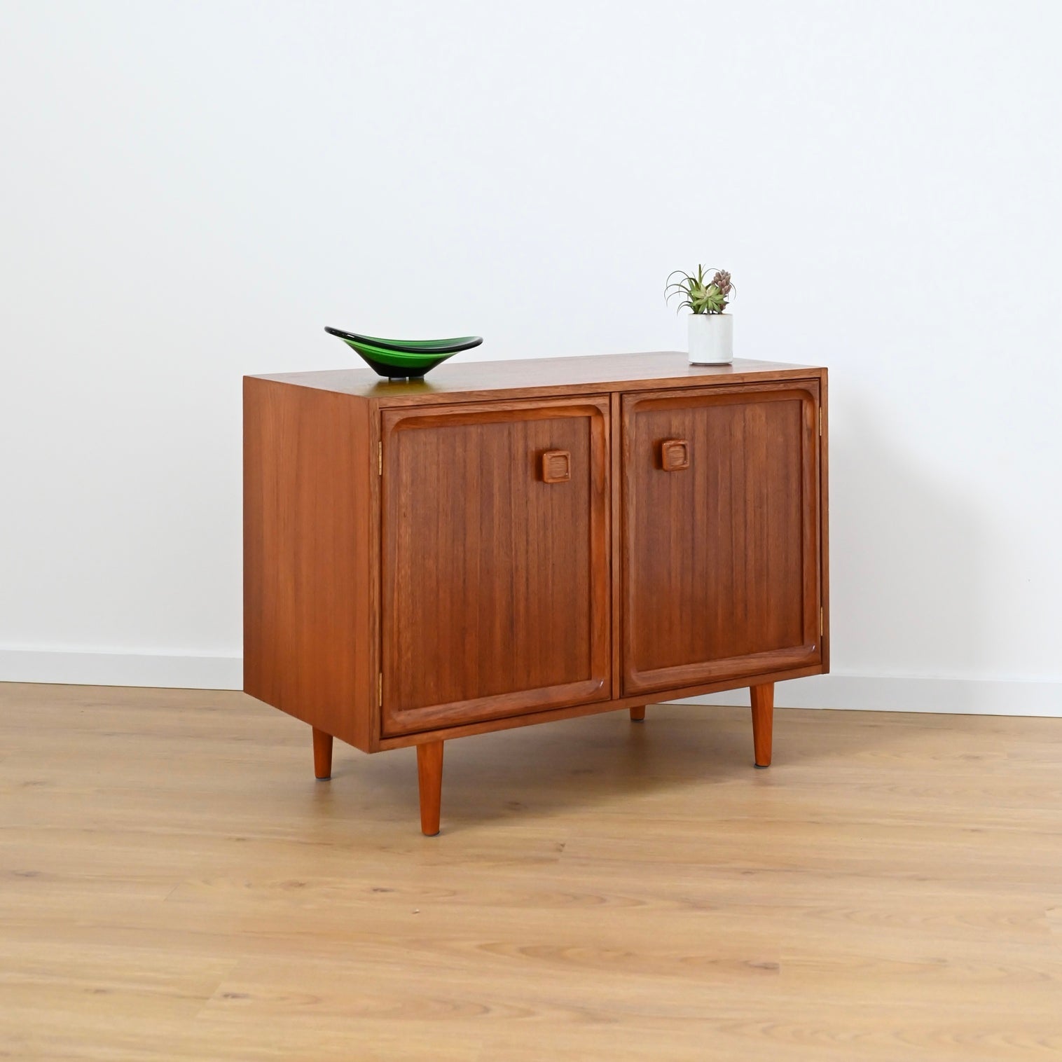 Mid Century Parker Teak LP Record Cabinet Square Handle