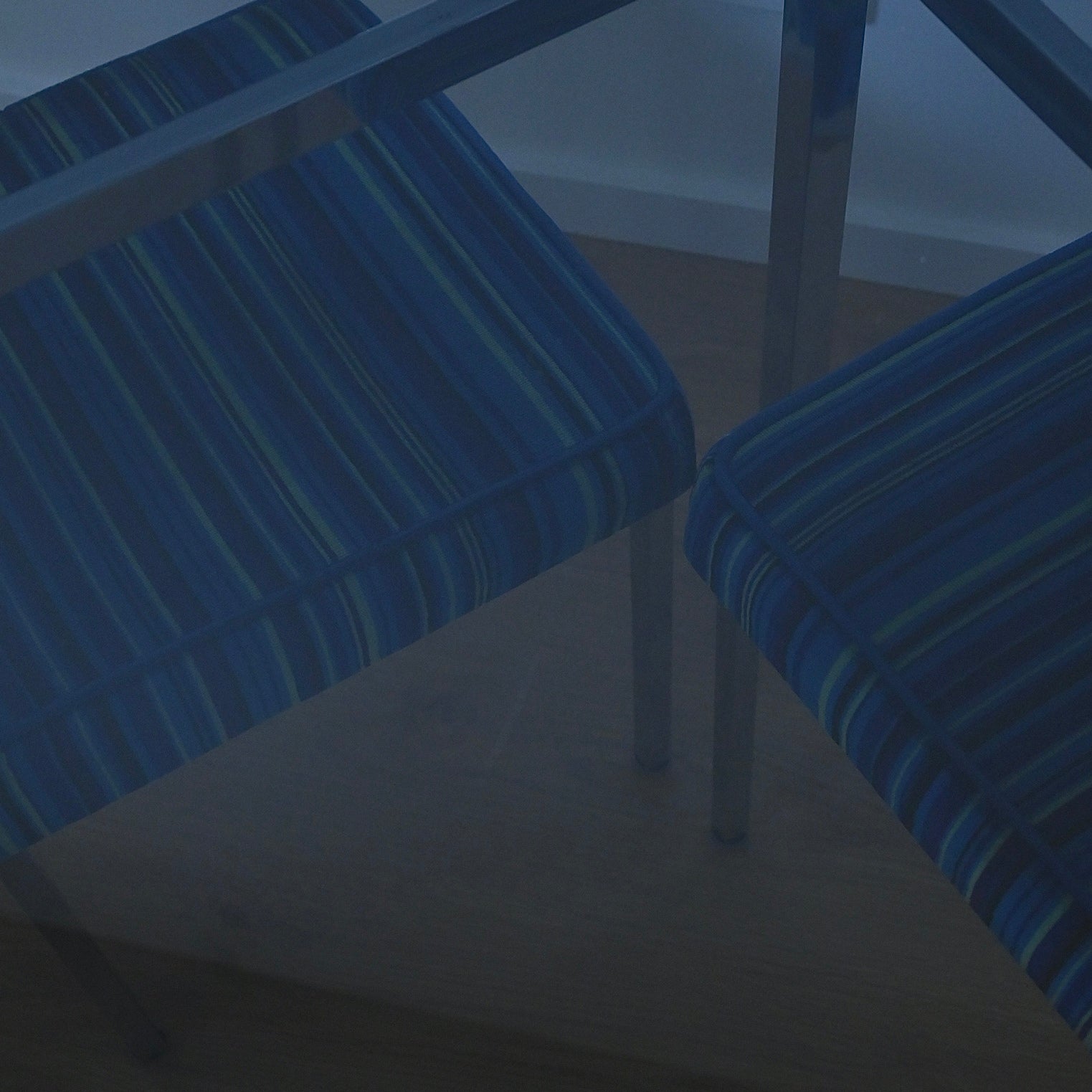 Mid Century Retro Blue Striped Velvet and Chrome Dining Set by ULTRA