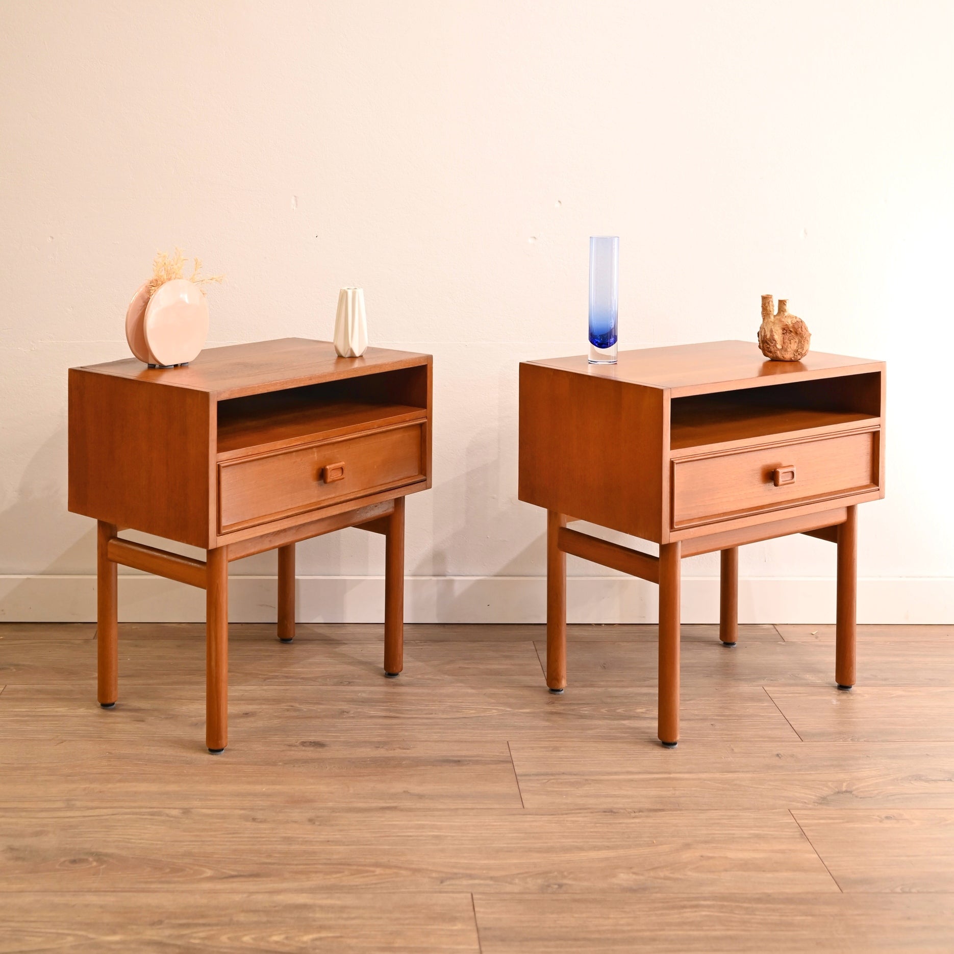Classic Australian made piece by Chiswell circa 1970s. This piece presents in excellent vintage condition with only minor imperfections. Popular deep profile door trim. 4x Drawers, the top lined with felt. Adjustable shelf. Elevated on tapered timber legs