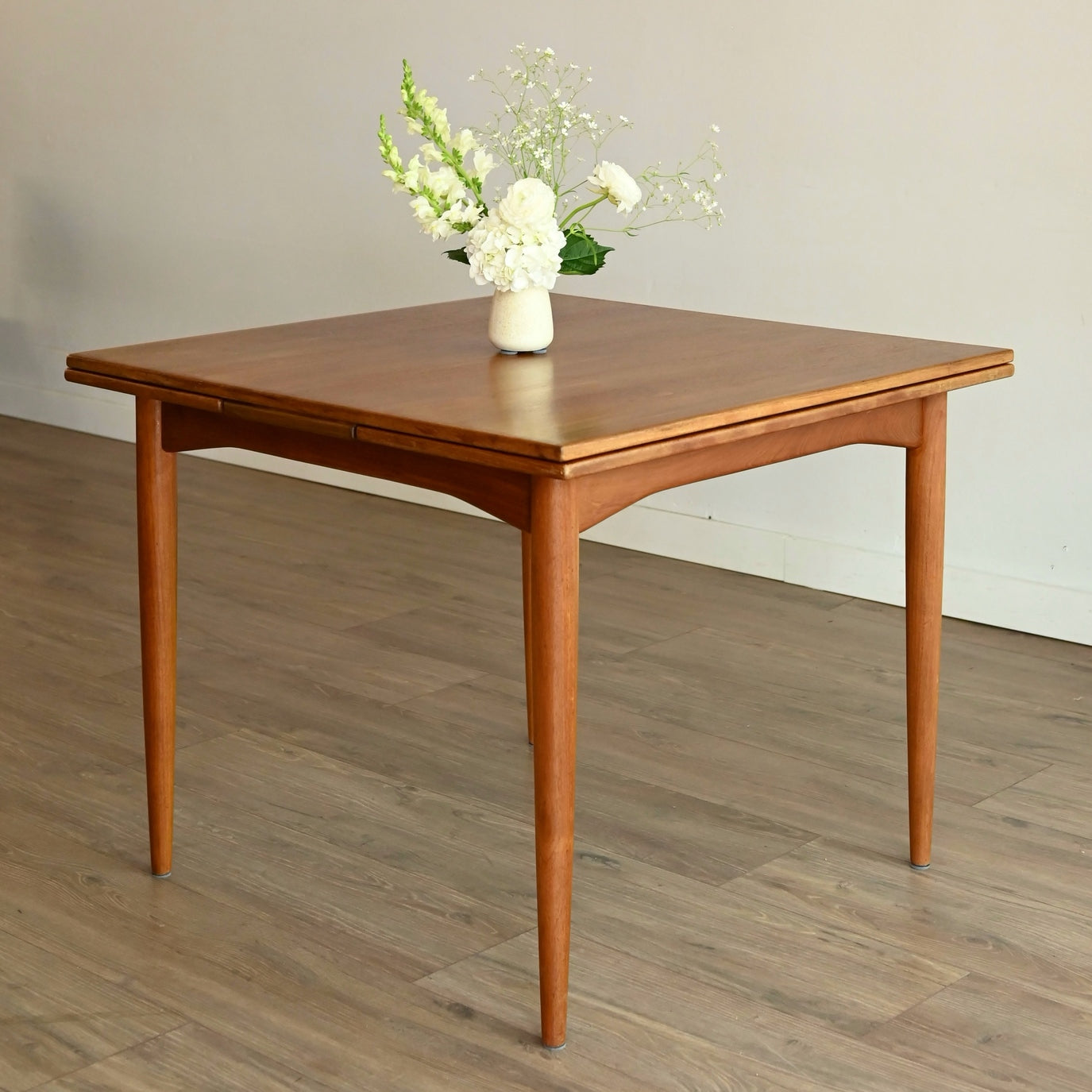 Classic Australian made piece by Parker circa 1970s. This piece presents in good vintage condition with minor imperfections commensurate with age. Small veneer repair to one of the extension pieces (photographed) The top face has been refinished with a durable hardwax oil. Seats 2-4.