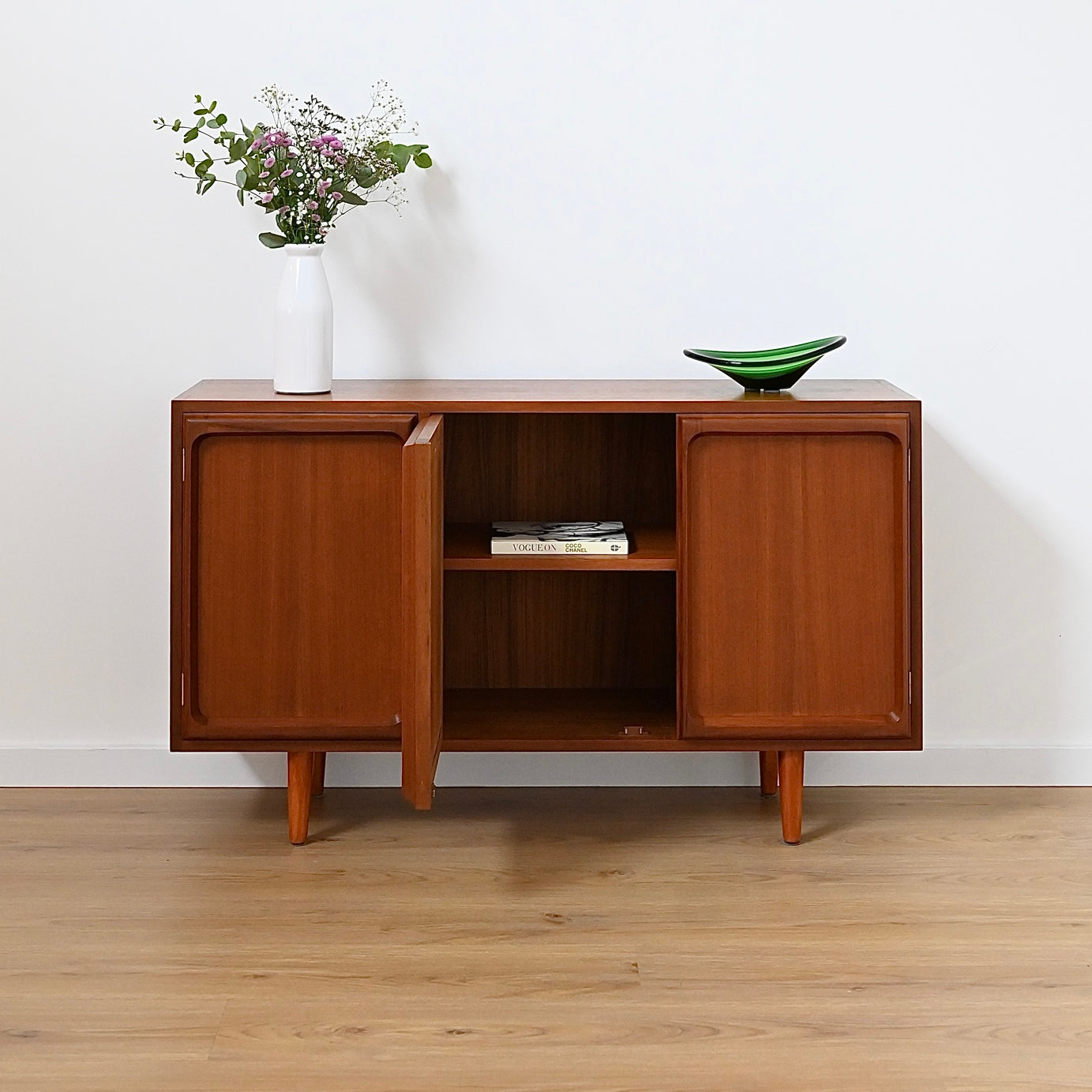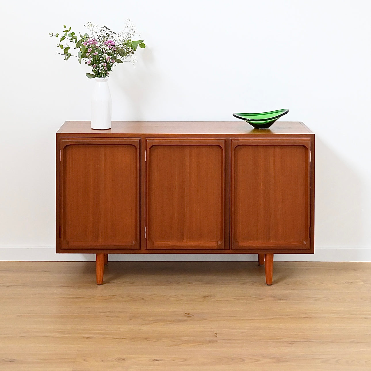 Classic Australian made piece by Chiswell circa 1970s. This piece presents in great vintage condition with only minor imperfections. Popular 'Koben' proud profile model. Adjustable shelves. Elevated on tapered timber legs.