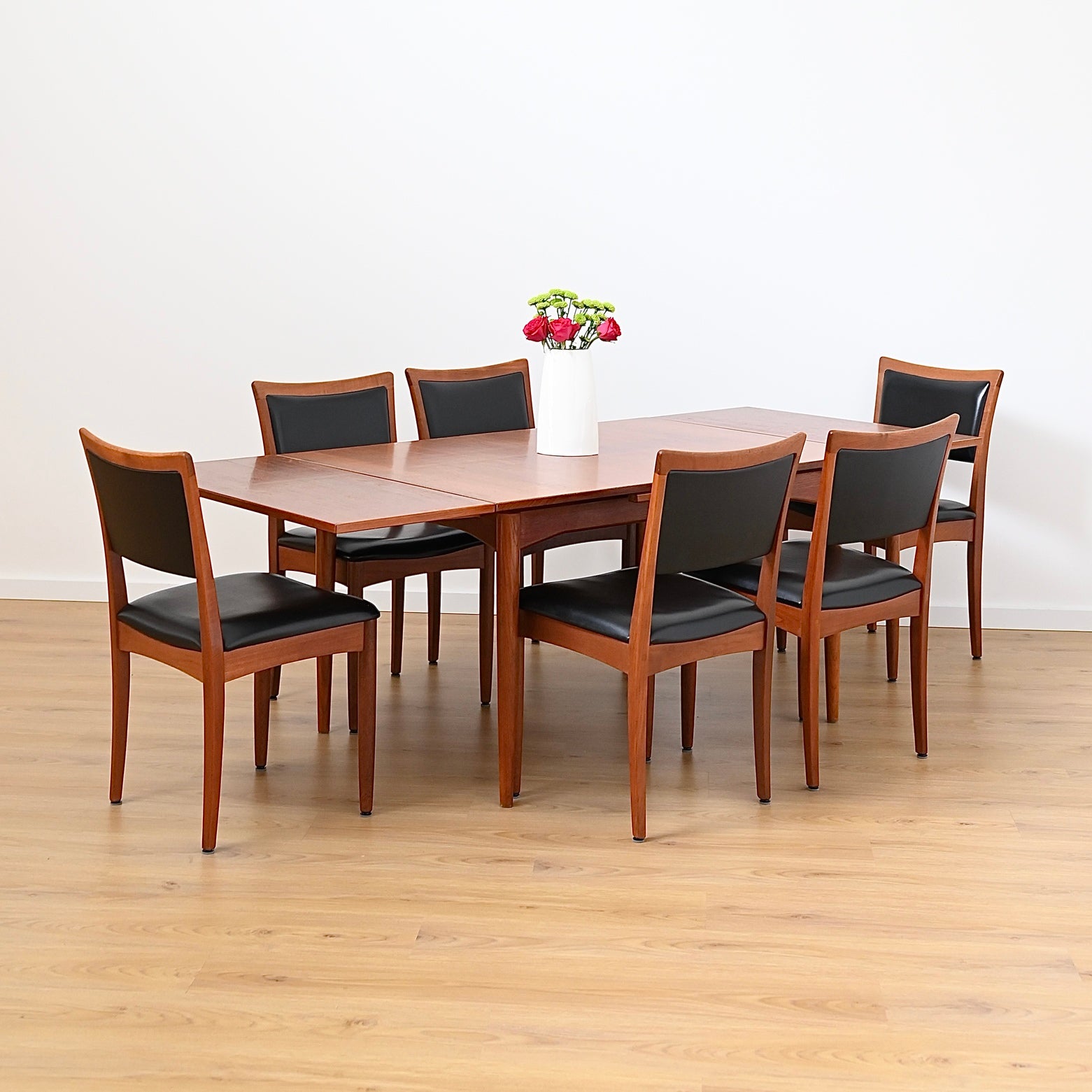 6x Mid Century Teak Dining Chairs by Chiswell with Teal Upholstery