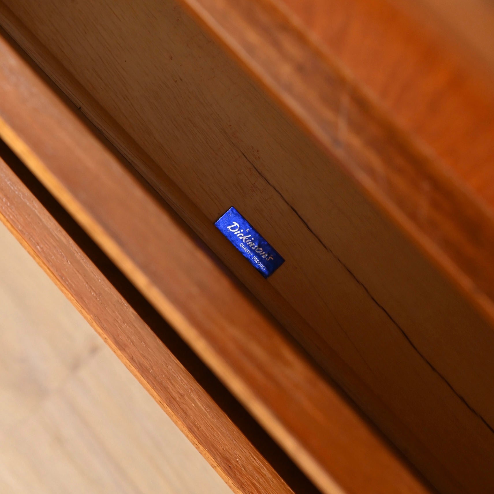 Really cool Australian made piece by Dickinsons circa 1960s. A rare model. Presents in good vintage condition with minor marks commensurate with age. Veneer imperfections to the door fronts. This doesn't detract from the beauty of the piece but has been considered in the price. Top face is in excellent condition. to the fixed shelving but nothing that. Removable and adjustable shelves inside the cabinet. Green felt lined top drawer with insert.