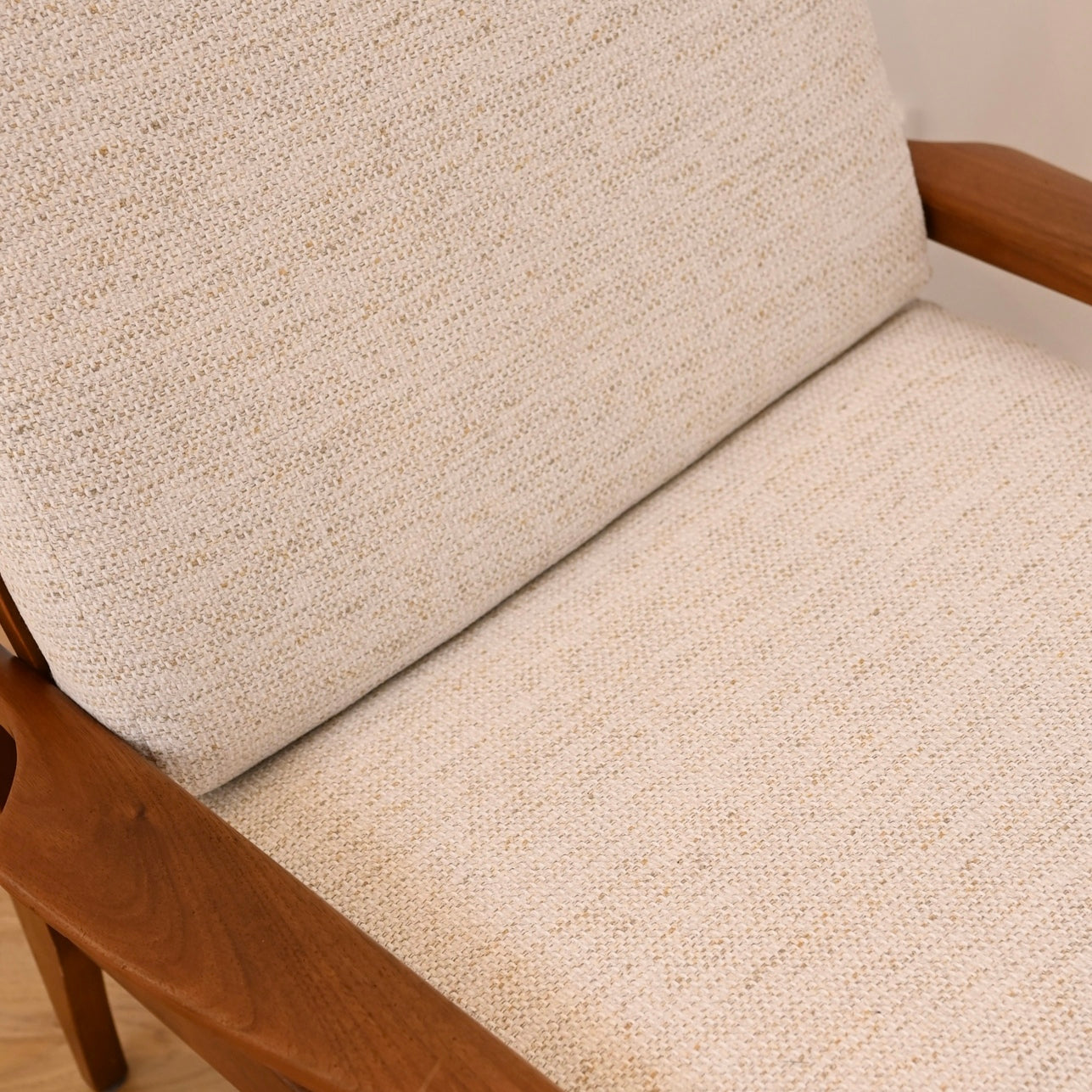 A stunning Fler Narvik high back single armchair. The frame has been tastefully refreshed with danish oil and presents in excellent vintage condition. Made of high quality Tasmanian Blackwood. Springs are very solid and strong. Freshly recushioned and reupholstered in Akito Natural by Warwick Fabric.