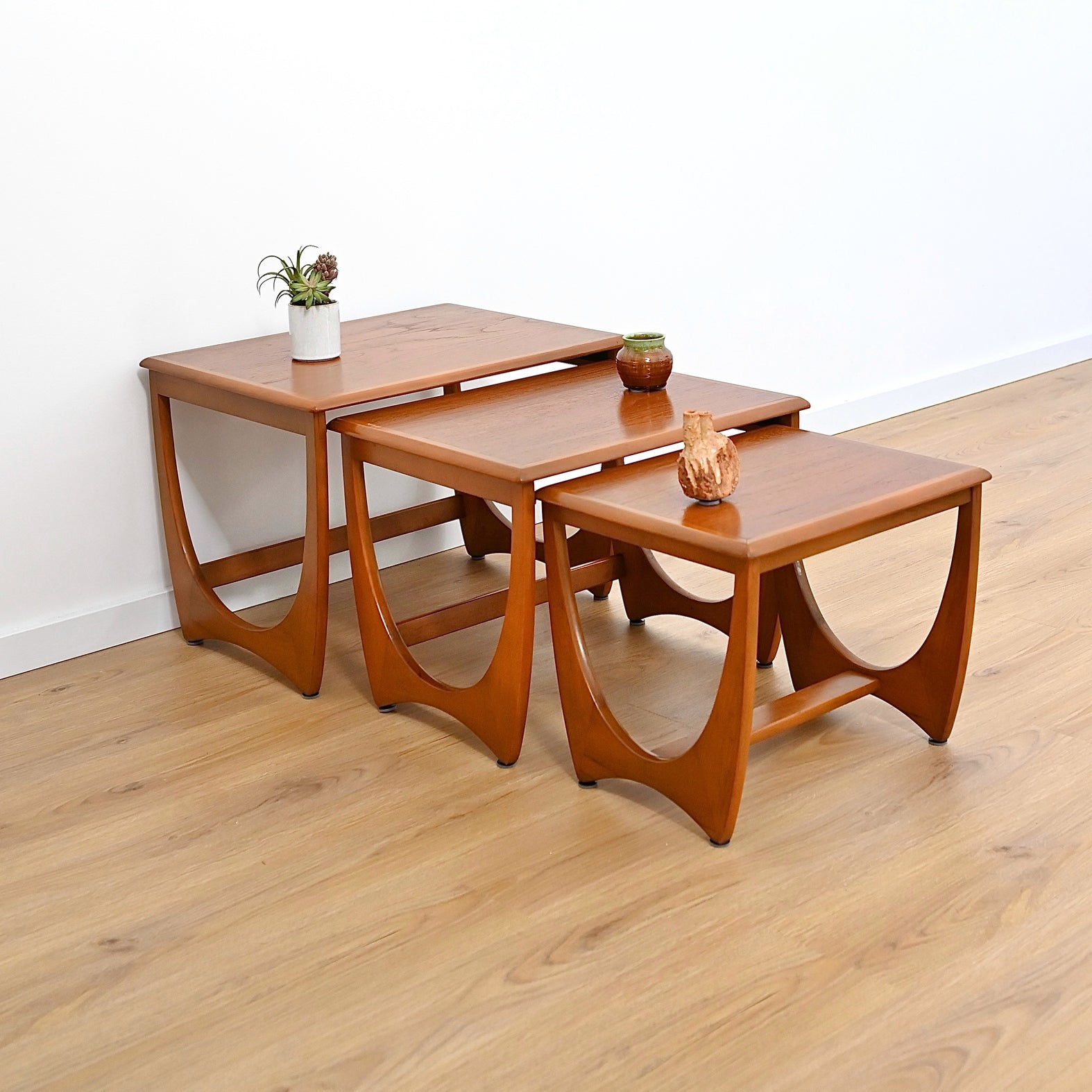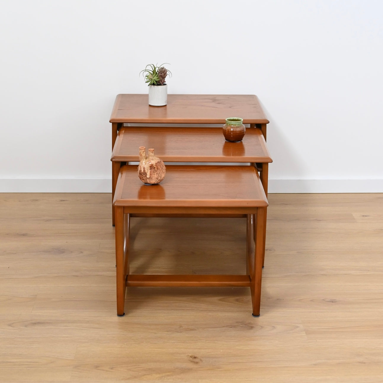Classic Australian made set of Nesting tables by Kalmar, in the style of G Plan tables. This set presents in great vintage condition with only very minor imperfections.