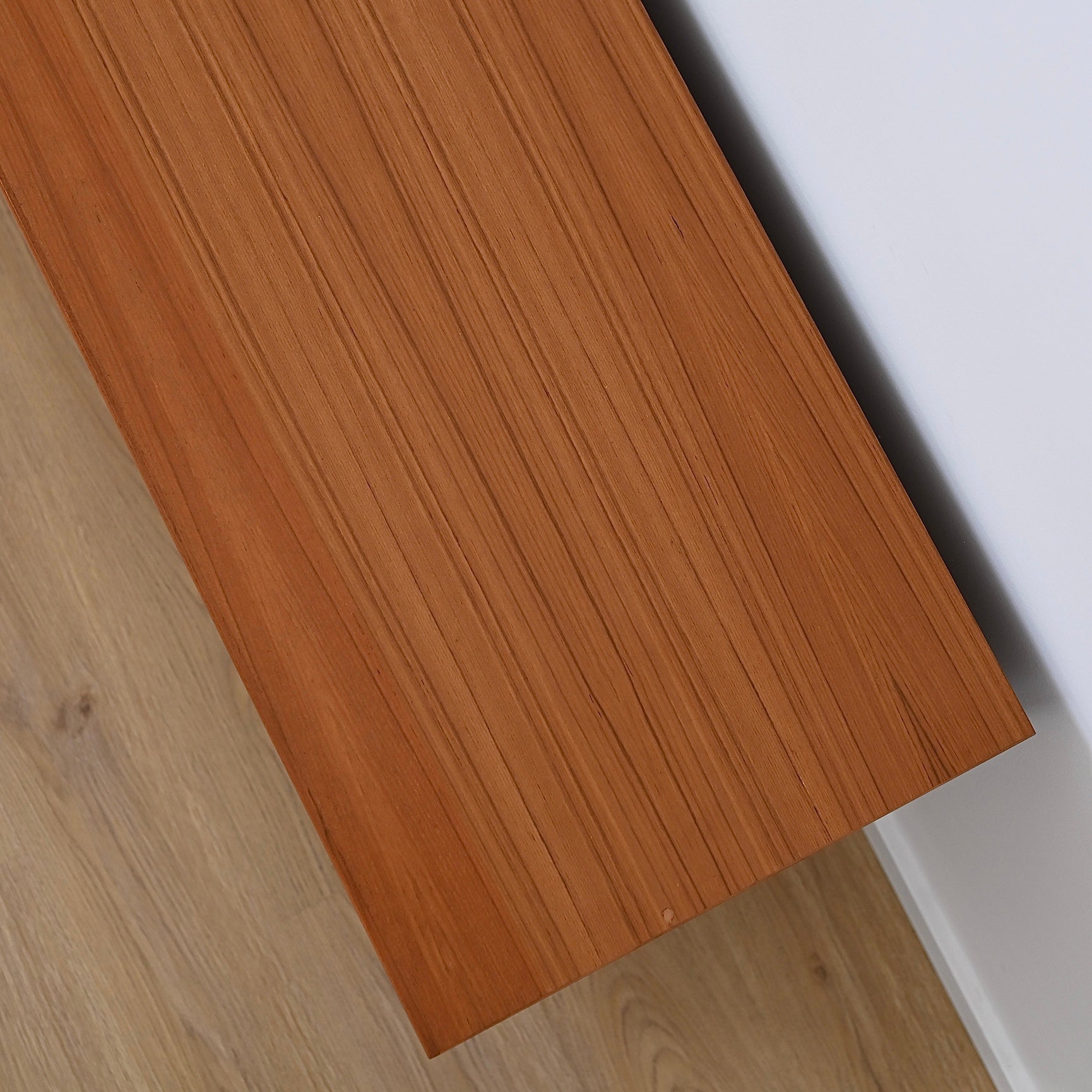 Classic Australian made piece by Chiswell circa 1970s. This piece presents in excellent vintage condition with only very minor imperfections. Lovely honey teak colour. Popular deep profile door trim. Elevated on tapered timber legs.